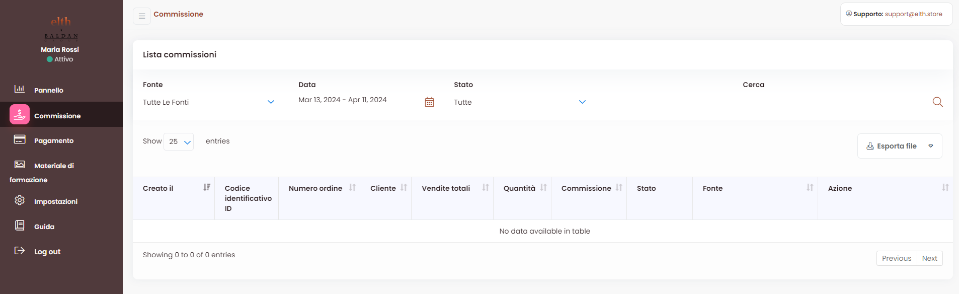 Le tue commissioni: nella sezione Commissione puoi verificare gli ordini ricevuti e le relative commissioni.